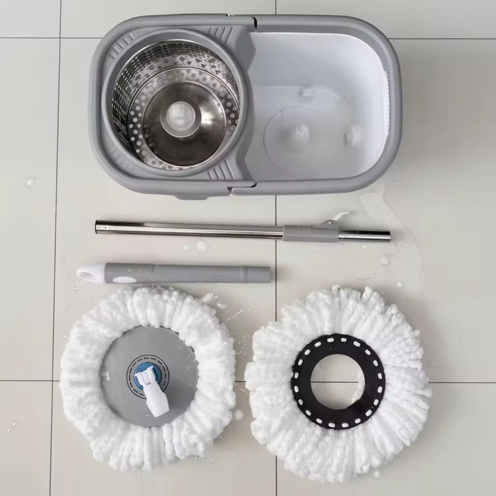 The set comes with two super-absorbent microfiber mop heads suitable for various floor types like tile, hardwood, and laminate