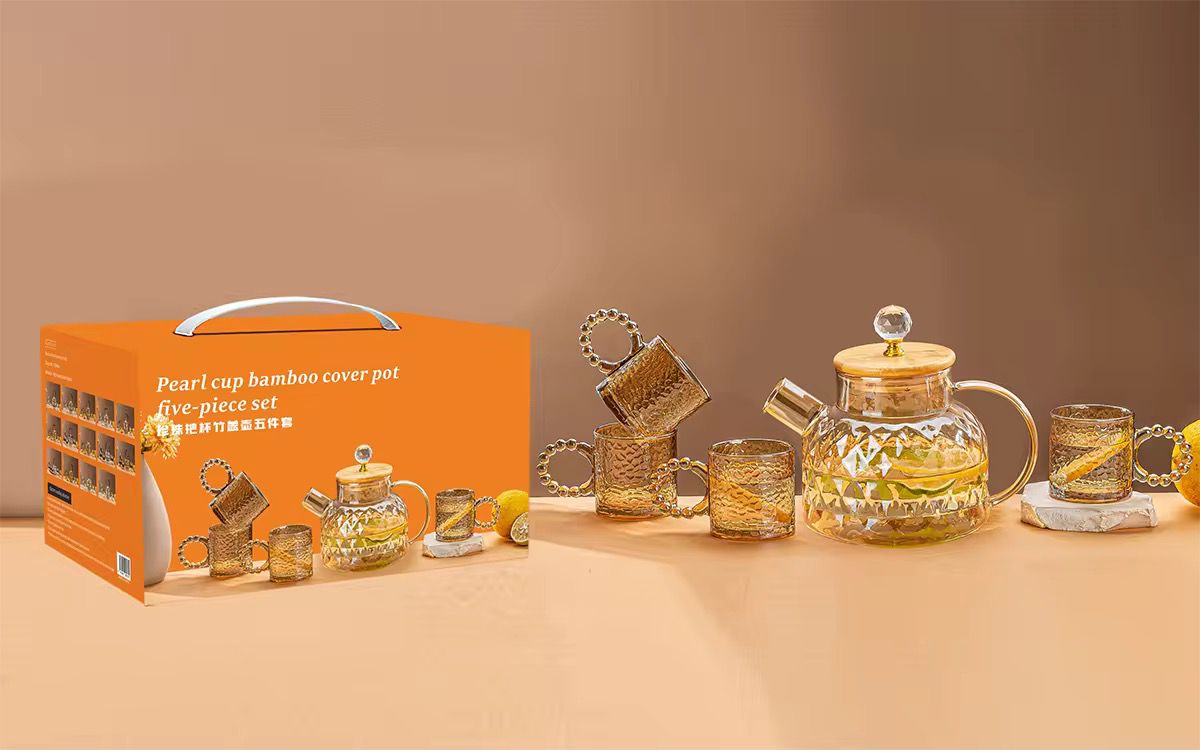 A premium 7-piece set including a heat-resistant glass pitcher with a natural bamboo lid and 6 matching cups. Designed to handle both hot and cold beverages, making it perfect for serving water, juice, tea, or coffee. Elegant and practical for daily use or special gatherings.